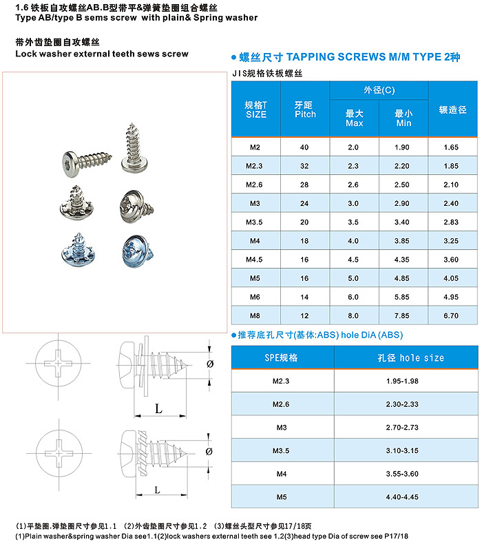 铁板自攻螺丝AB.B型带平&弹簧垫圈组合螺丝